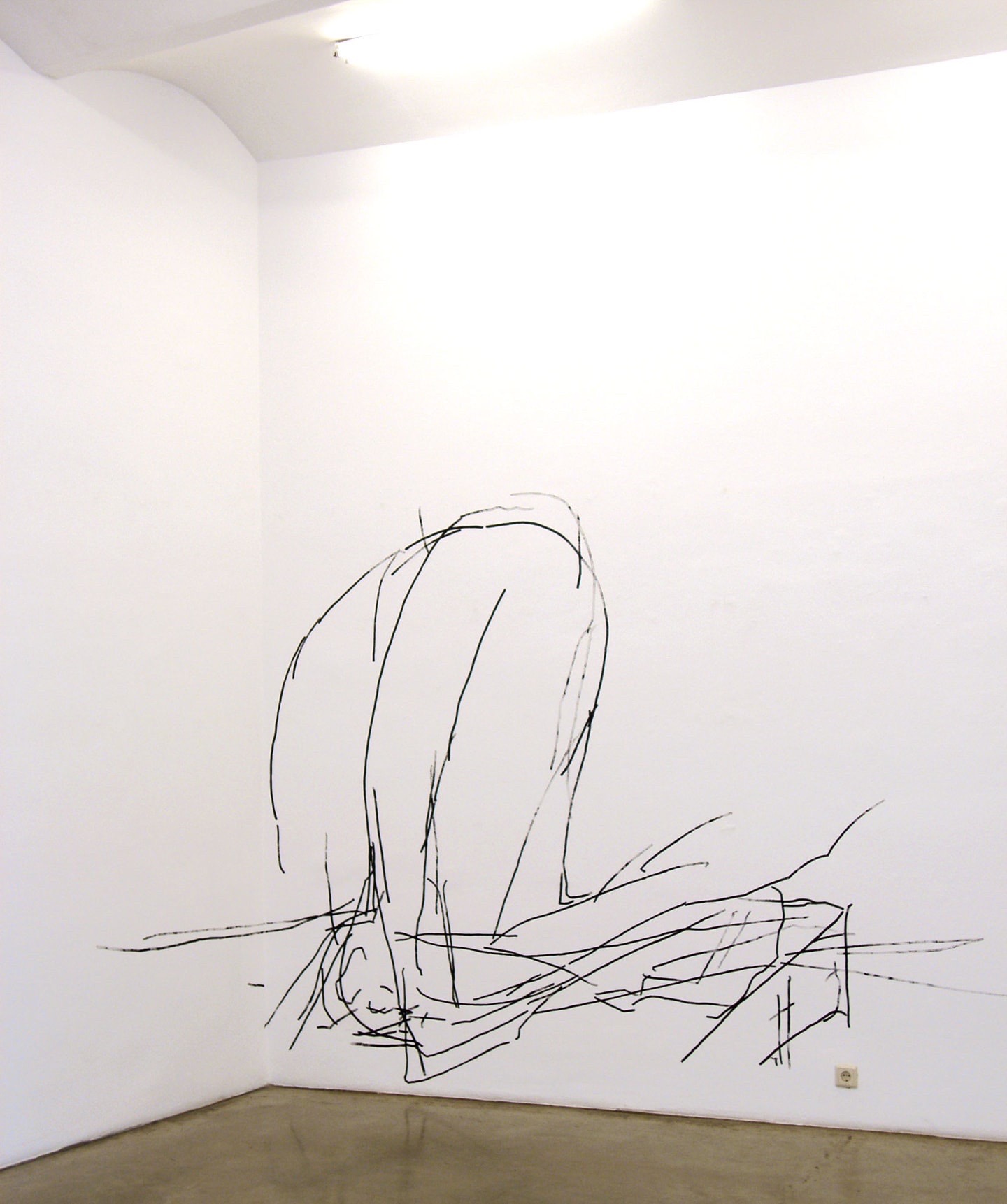 In the work No title the lines consist of hairs that are interwoven horizontally and vertically. Scharp interrupts the basic principle that connects with the grid, its uniformity and structure by taking advantage of the natural conditions of the hair, which expands differently according to the dryness and humidity of the surroundings.