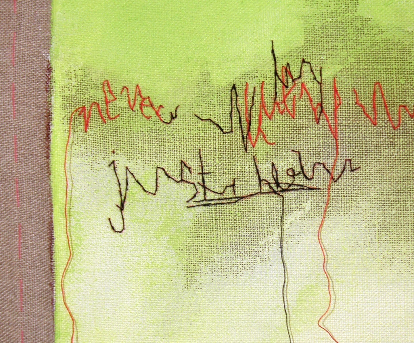 Dinah Kübeck mainly uses textile materials and techniques as well as painting; sometimes these two areas coalesce, but not always. For quite some time Kübeck’s focus has been on the grid as life’s dominating force, on life’s structures and the human need for classification and repetition. Her work deals with social-constructivist principals and asks questions about the societal as well as the individually constructions humans build: constructed structures and grids in everyday life, that we are hardly/not able to perceive anymore, as they have penetrated too far into our thoughts and actions.
