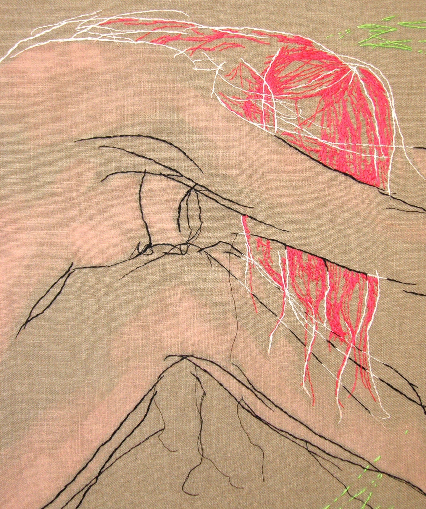 Sally Hewett is interested in how we see things and how we interpret what we see. She examines the perception and evaluation of things as beautiful, ugly, et cetera by building bodies in all of its various appearances. Hewett wants to unpick these terms of valuation and put the viewers’ notion of what is beautiful into question. At the same time Hewett disrupts their expectations of the traditional crafts of embroidery and stitch.