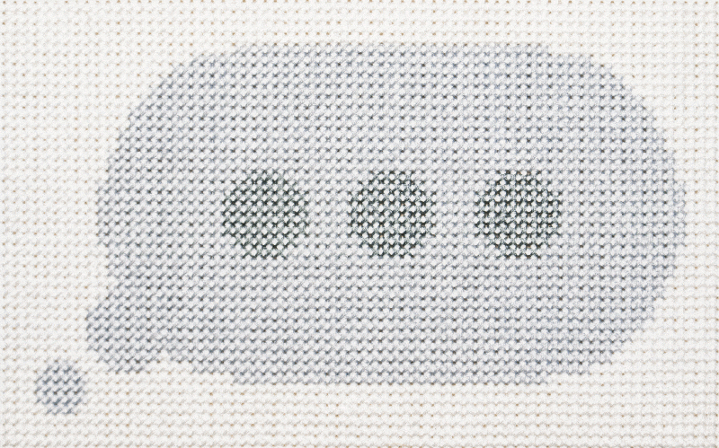 The typing awareness indicator is a feature that has added both anxiety and anticipation to the act of texting. The looping animation of the ellipsis is a hypnotic decoy for a real response. This feature allows for a digital liminal space and creates the illusion of synchronous communication. Aubrey Longley-Cook’s work is part of an on going series that investigates the narratives found by combining analog and digital forms of communication through the techniques of embroidery and animation.