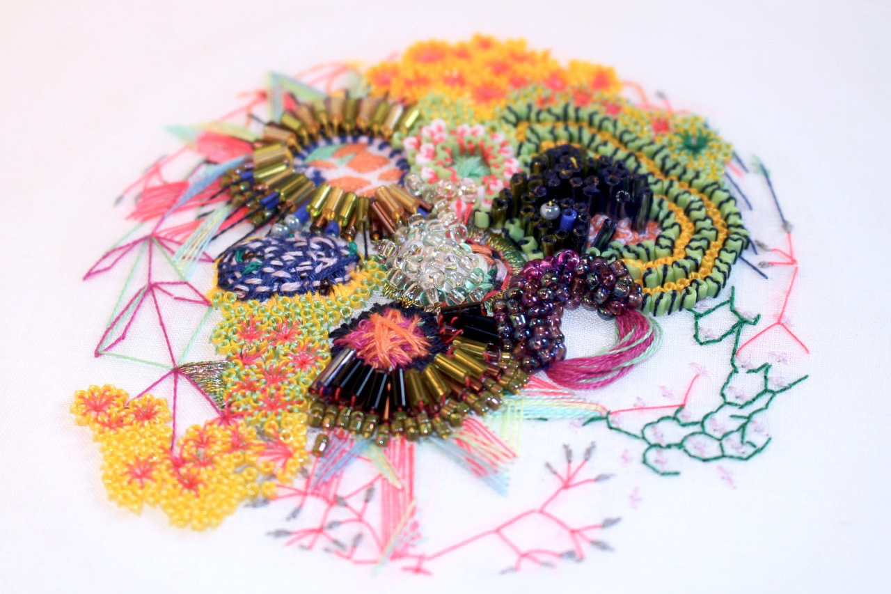 The garden is a traditional subject for embroidery. I wanted to explore this theme in my work and in August 2004 I was invited to be Artist in Residence at Winterbourne Botanic Garden. The initial inspiration for the project came from research of the historical textiles at the Victoria & Albert Museum and from my own collection of domestic embroideries.